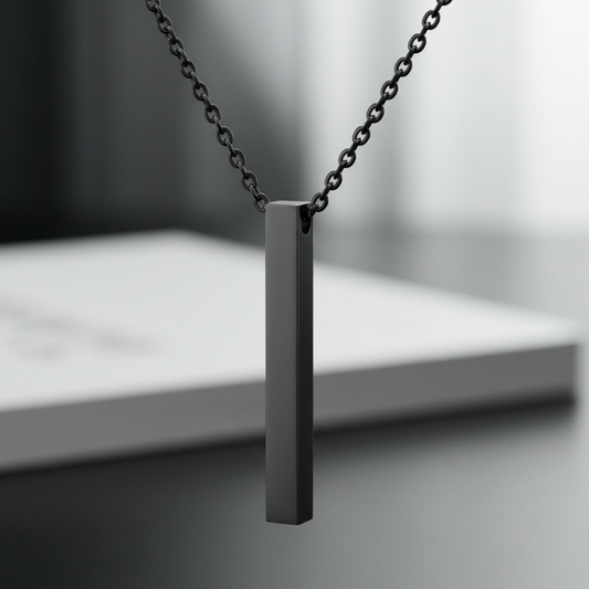 Vertical Rectangular Stainless Steel Blank Bar Pendant Black With Chain