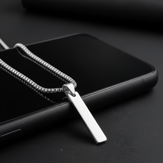 Vertical Rectangular Stainless Steel Blank Bar Pendant Silver With Chain